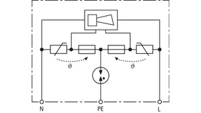 - Protección bipolar contra sobretensiones con dispositivo de vigilancia y separación