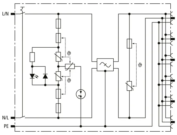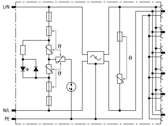 | Corriente total de descarga (8/20 µs) [L+N-PE] (Itotal ) | 5 kA |