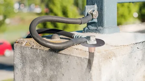 Nuestro sistema de puesta a tierra para aplicaciones ferroviarias DEHN ha demostrado su eficacia en la tecnología de transporte, ya que se ha desarrollado especialmente para la puesta a tierra de las armaduras de los elementos de hormigón situados a corta distancia de las instalaciones eléctricas de alta tensión. Por un lado, permite la compensación de potencial de las estructuras de hormigón y, por otro, transfiere la corriente de cortocircuito cuando se produce una rotura de la catenaria.