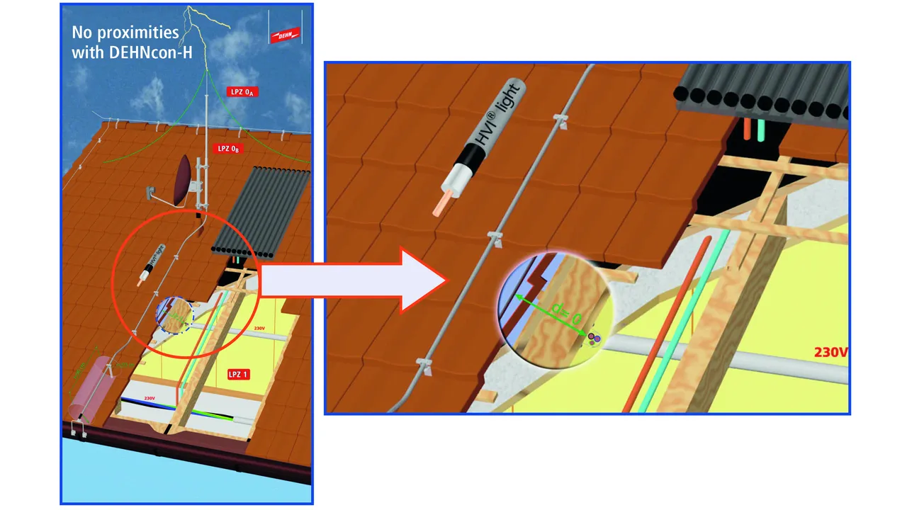 The HVI light Conductor meets the requirements of DIN IEC/TS 62561-8 (VDE V 0185-561-8).