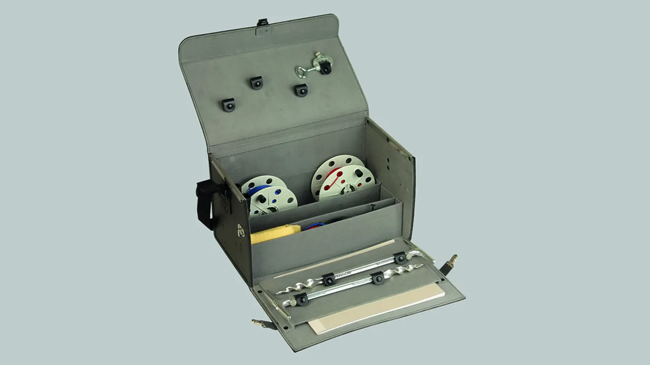 Measuring case equipment includes: – 1 coiler with unwinding handle and 25-m red measuring line, with banana pin, Part No. 585 310 – 1 coiler with unwinding handle and 50-m blue measuring line with banana pin, Part No. 585 320 – 2 augers 350 mm long, Part No. 587 460 – 2 measuring lines, 0.75 mm2, 3 m long, black, with banana pins on both sides, Part No. 545 020 (connection between earth-termination system and earth resistance meter) – 1 measuring line, 0.75 mm2, 0.5 m long, red, with banana pin on both sides, Part No. 545 010 – 1 measuring line, 0.75 mm2, 0.5 m long, blue, with banana pins on both sides, Part No. 545 011 (connection between coiler and auger) – 1 test clamp, clamping range 2-21 mm, Part No. 588 000