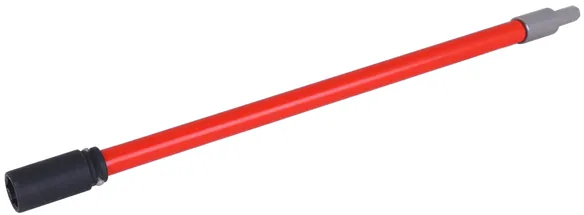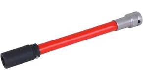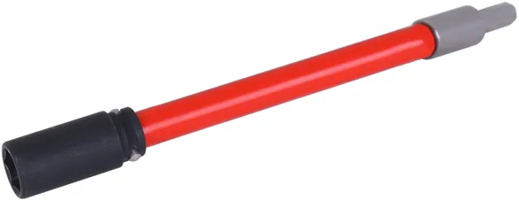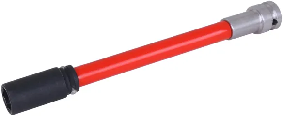 Alargadera de acero inoxidable con llave de vaso con resorte magnético (SW17) y una montura cuadrada de 1/2 pulgadas para su uso con una llave de impacto. Con mango rojo de giro libre. También se incluye: junta tórica y pasador de bloqueo