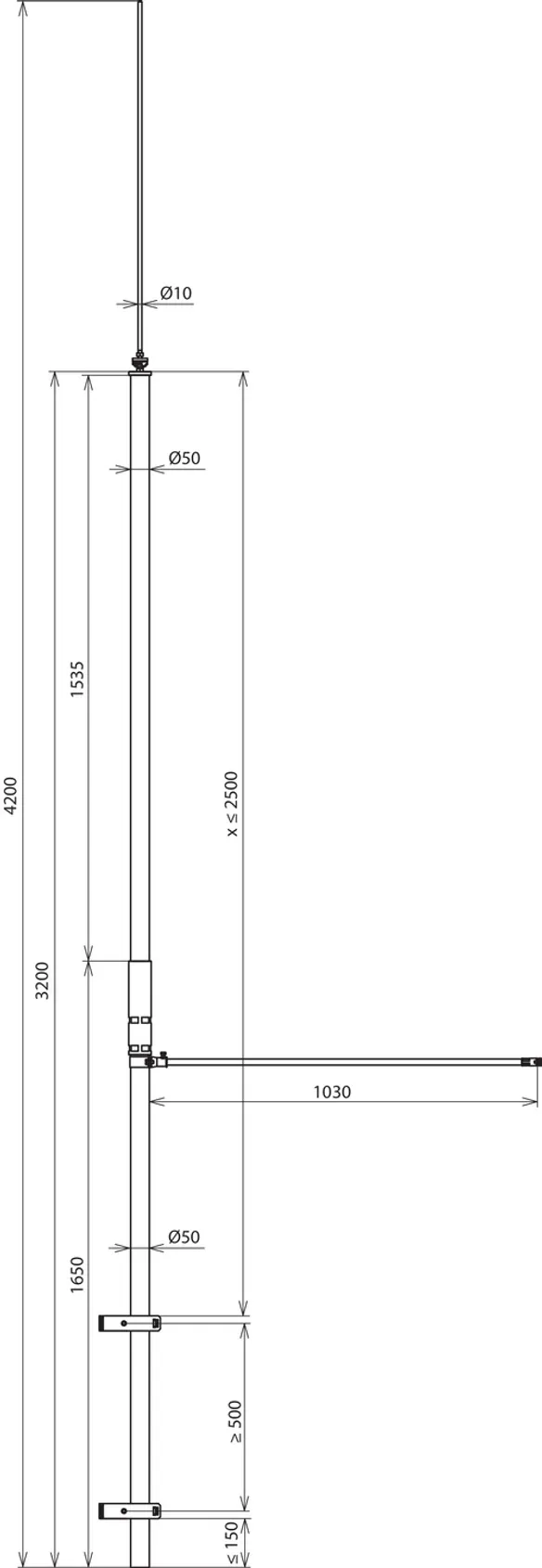| Máx. velocidad del viento | (Montaje en pared con máx. longitud libre 3500 mm, Ø8 mm) 232 km/h |