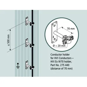 Las condiciones de instalación particulares aseguran que se evite una chispa eléctrica en las pieza metálicas cercanas durante el paso de la corriente de rayo a través del cable HVI.
