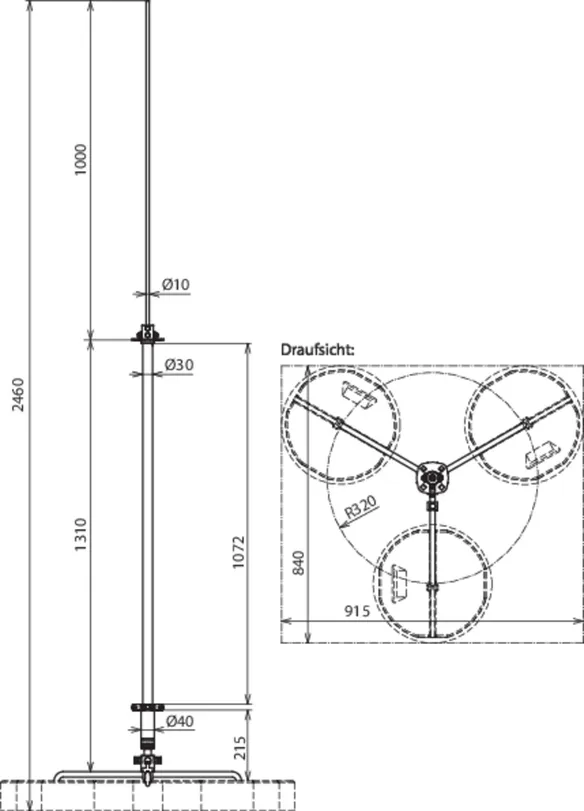 | Radio del trípode | 320 mm |