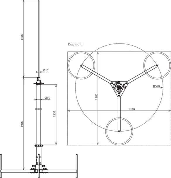 | Radio del trípode | 560 mm |