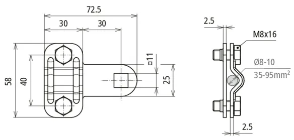 | Margen de apriete de la pletina | hasta 30 x 4 mm |