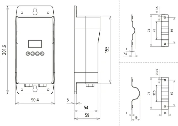 | Material de la envolvente: Contador | termoplástico, gris, UL 94 V-0 |