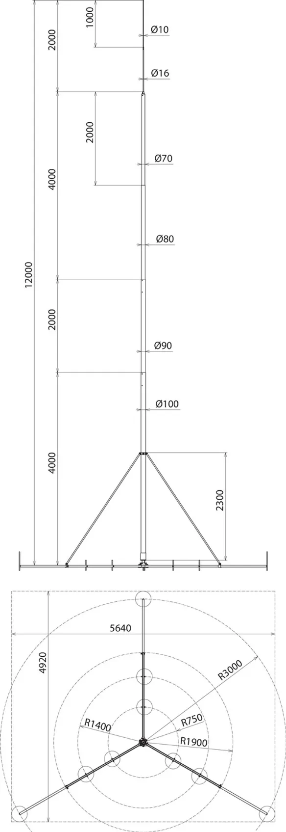 | Espacio necesario para el trípode | 4920 x 5640 mm |