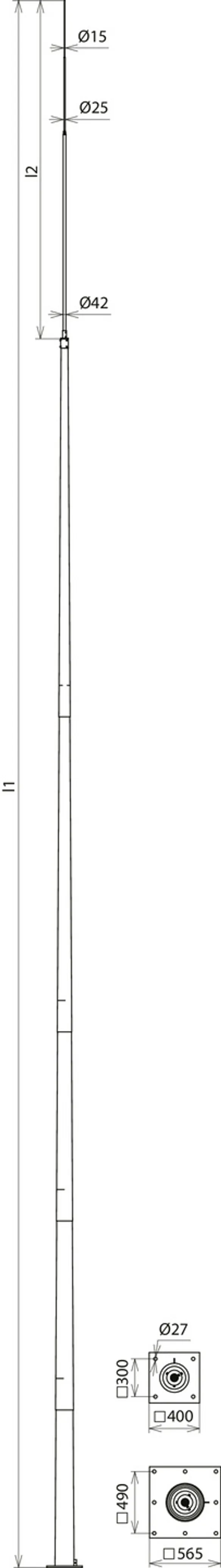 | Versión del zócalo para montaje | 8x Ø27 mm para 8x M24 (490 x 490 mm) |