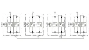 Kit compuesto por descargadores de corrientes de rayo y sobretensiones con raíl aislado de cableado de módulos para su uso en sistemas de inversor con anti PID activo con un desplazamiento de CC máximo de 750 V CC. Cableado de los sistemas de puesta a tierra de conformidad con la norma IEC 60364-4-44, tabla 44.A1 - RE y Z así como RE y RA conectados.