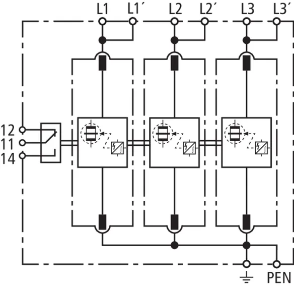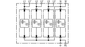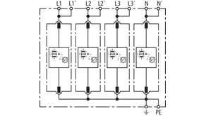 | Corriente de impulso de rayo total (10/350 µs) [L1+L2+L3-PEN] (Itotal ) | 75 kA |