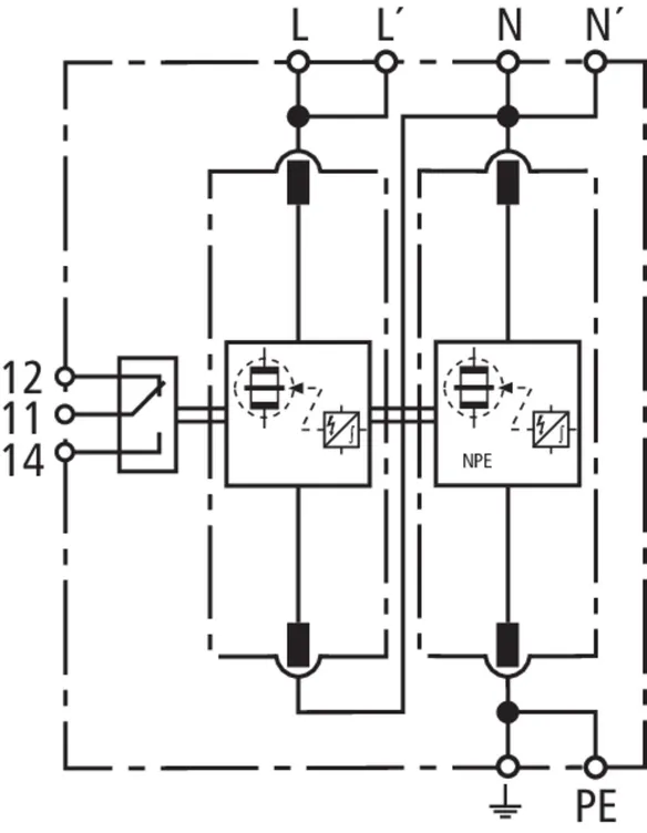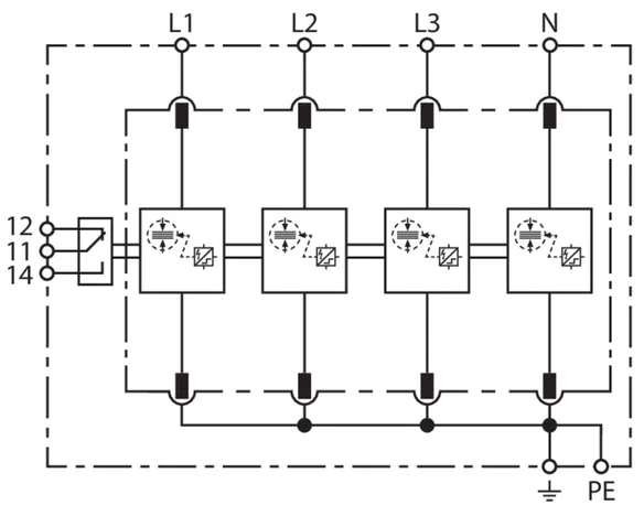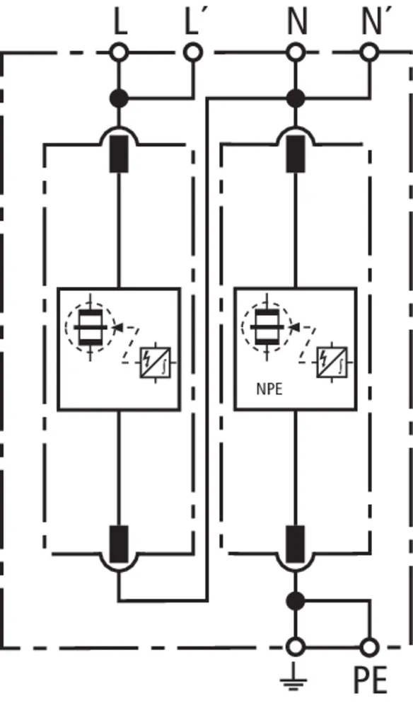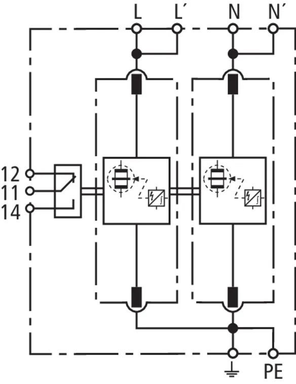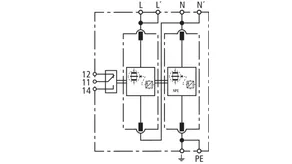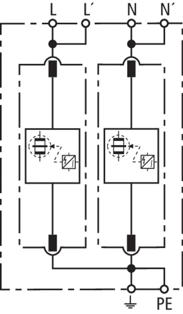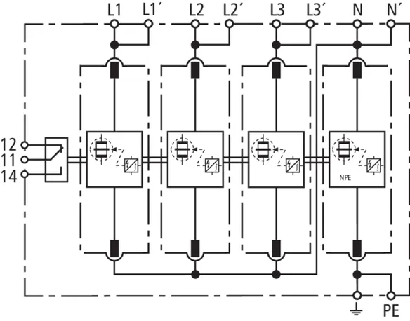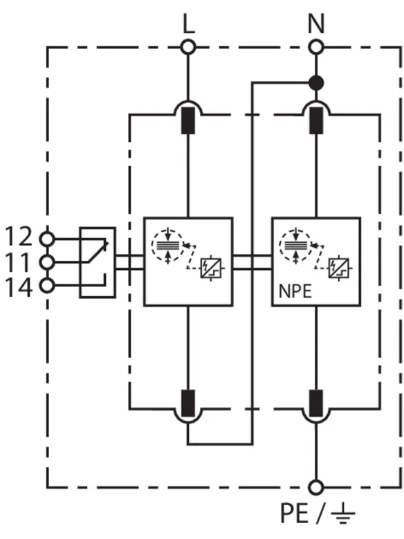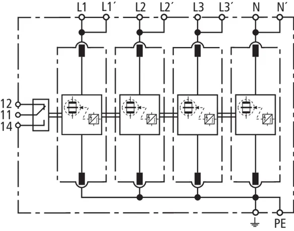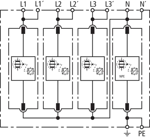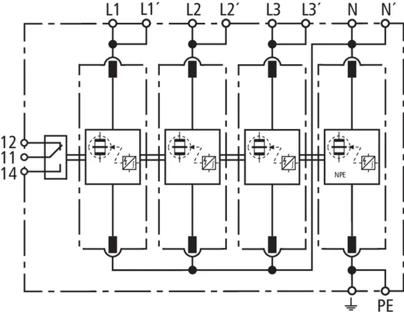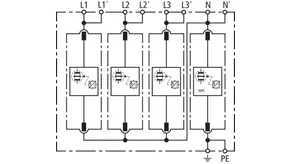 | Corriente de impulso de rayo (10/350 µs) [L-N]/[N-PE] (Iimp ) | 25 / 100 kA |