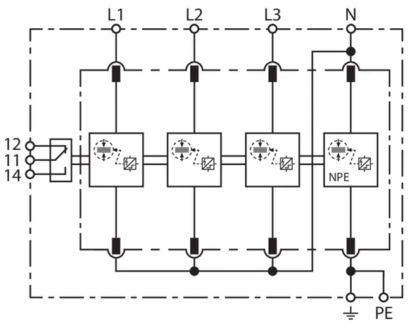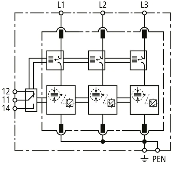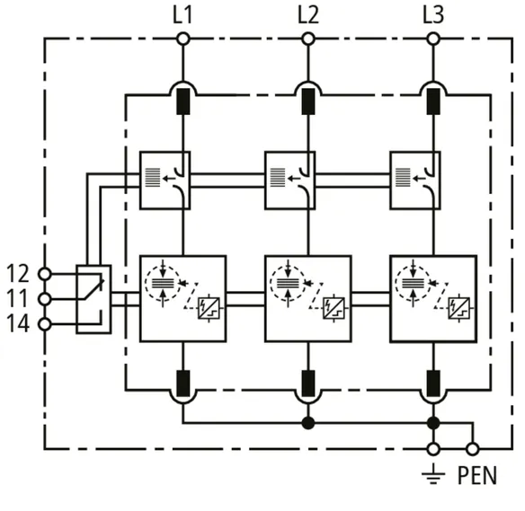 | DPS según EN 61643-11 / IEC 61643-11 | Tipo 1 + Tipo 2 + Tipo 3 / Clase I + Clase II + Clase III |