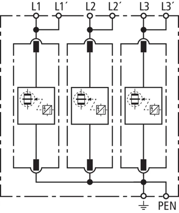 | Corriente de impulso de rayo (10/350 µs) [L-PEN] (Iimp ) | 25 kA |