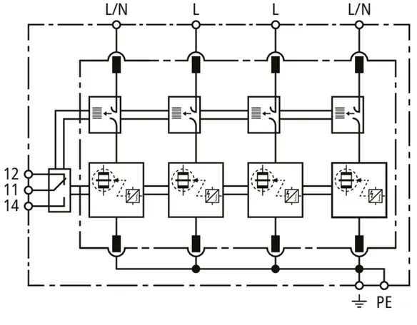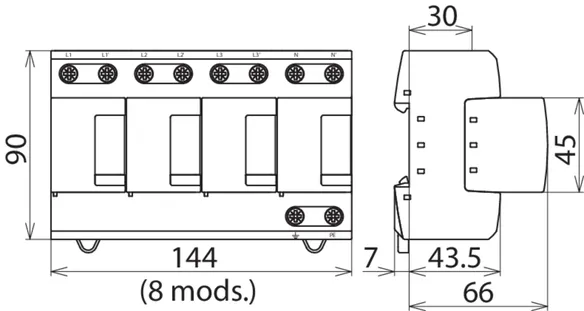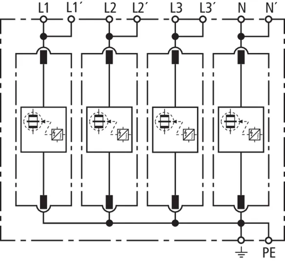 - Capacidad de descarga hasta 100 kA (10/350 μs)