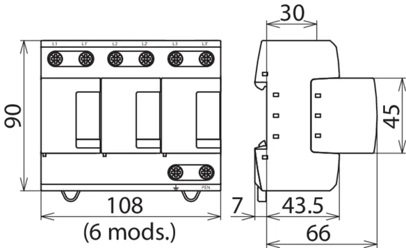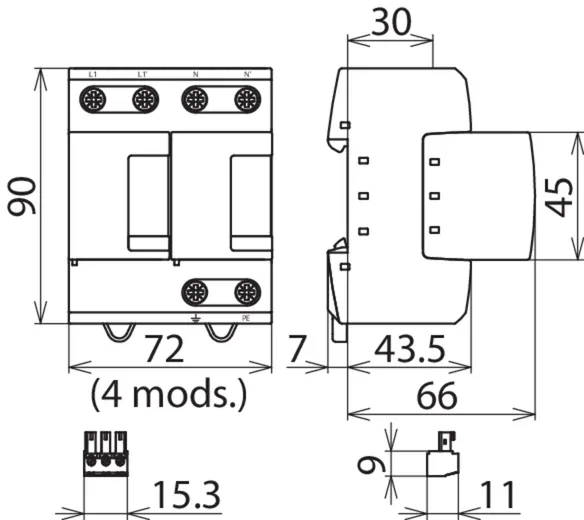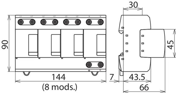 | Nivel de protección [L-N]/[N-PE] (UP ) | ≤ 1.5 / ≤ 1.5 kV |