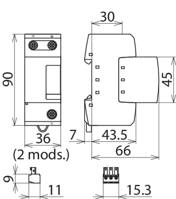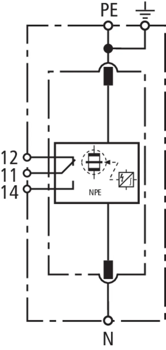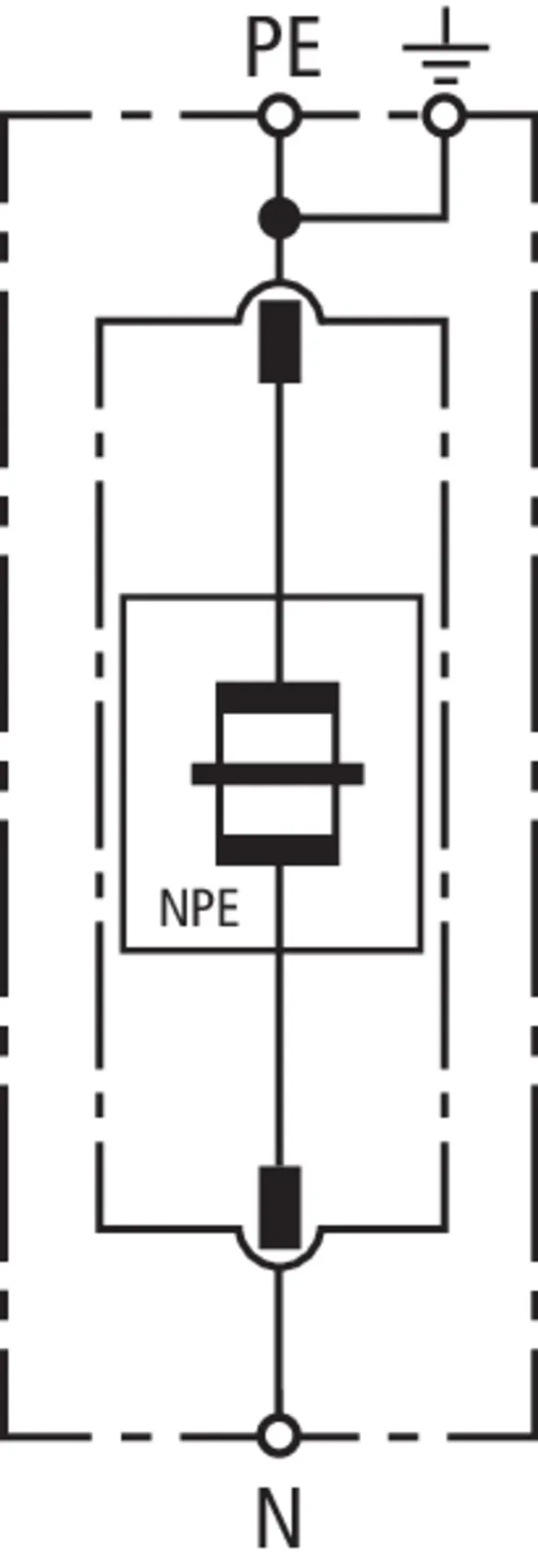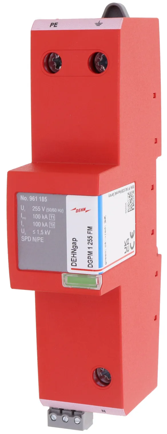 - Descargador de corriente total, especial para aplicación en sistemas TT, con circuitos 3+1 y 1+1 según IEC 60364-5-53, entre el conductor neutro N y el conductor de protección PE