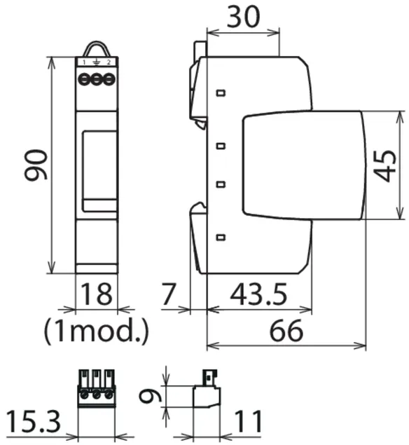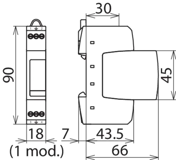 - Ocupa un solo módulo según DIN 43880