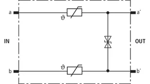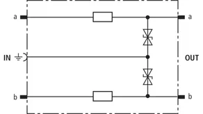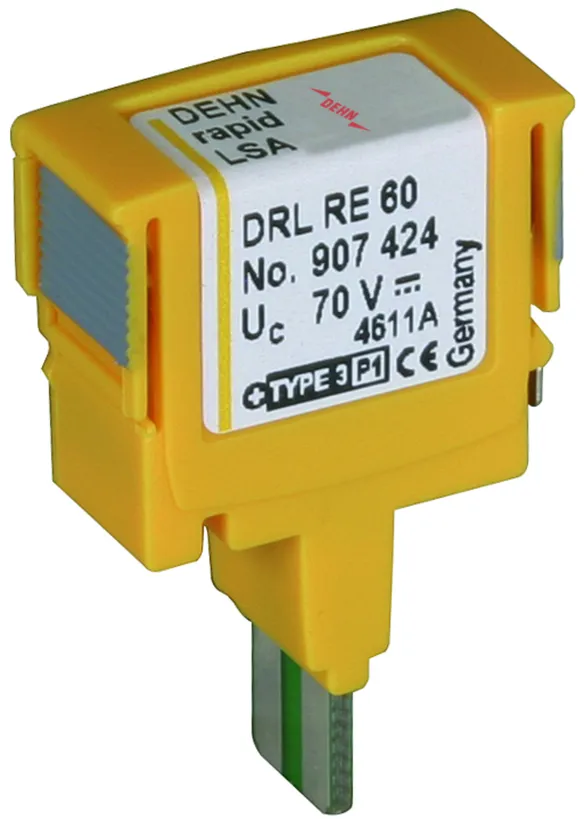 Elemento enchufable de protección 1 DA coordinado energéticamente con el dispositivo enchufable DRL como protección de una sola etapa de equipos finales, para transmisiones de alta frecuencia como G.703 ó ISDN U2m, S2m, y S0. Montaje con EF 10 DRL. Instalación recomendada solamente en unión con el bloque de protección enchufable DRL 10.