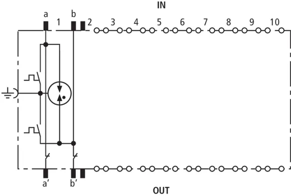• La función de desconexión de la regleta LSA, integrada en el descargador de corriente de rayo ofrece, además, protección al efectuar pruebas, desconexión o puenteos