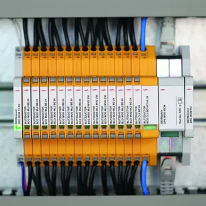 Descargador combinado universal de tamaño reducido en ancho de 19 mm y conexión RJ45 con indicación de estado para un mantenimiento sencillo. Protección de aplicaciones en cableados estructurados según la clase EA hasta 500 MHz, por ejemplo, Ethernet industrial, distribuidor de datos, sistemas de cámaras digitales, Power over Ethernet (conforme a IEEE 802.3 hasta 4PPoE) e interfaces basadas en Ethernet en general. Protección de todos los pares de hilos mediante descargador de gas de alto rendimiento y diodos de protección entre las líneas de señal, así como de pares de hilos. Tipo de adaptador totalmente apantallado con casquillo RJ45 para el montaje en carril DIN. Con conexión roscada adicional por el lado de la carcasa para una óptima conexión a tierra.