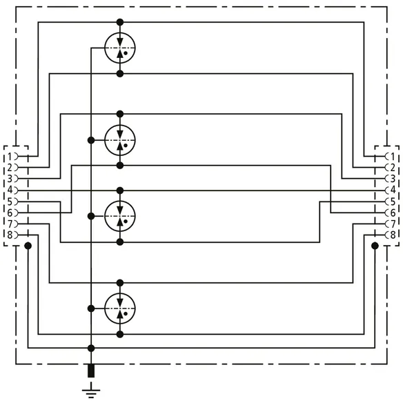 Descargador universal para Ethernet Industrial, alimentación por Ethernet (conforme a IEEE 802.3 hasta PoE++/4PPoE) y aplicaciones similares para sistemas de cable estructurado según clase E hasta 250 MHz. Protección de todos los pares a través de descargadores de gas y una matriz de filtros por par. Ejecución completamente blindada para montaje en carril DIN (hasta 1 Gbit Ethernet).