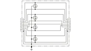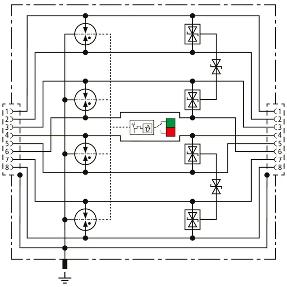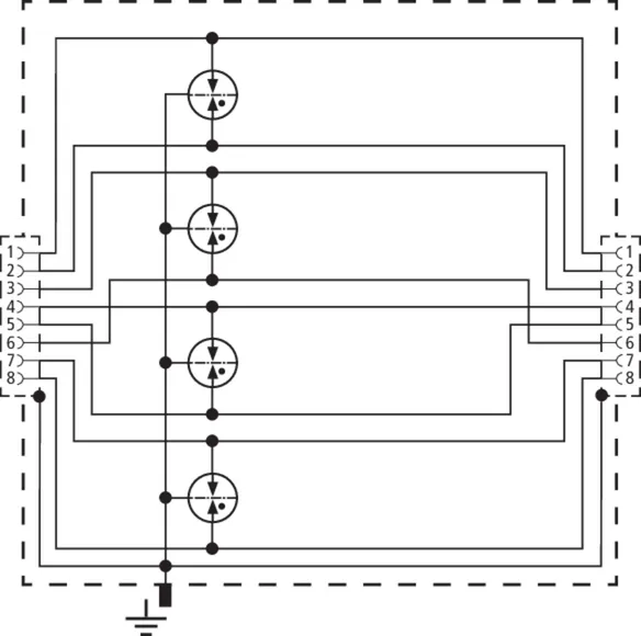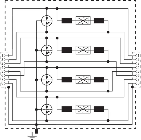 Descargador universal para Ethernet Industrial, alimentación por Ethernet (conforme a IEEE 802.3 hasta PoE++/4PPoE) y aplicaciones similares para sistemas de cable estructurado según clase E hasta 250 MHz. Protección de todos los pares a través de descargadores de gas y una matriz de filtros por par. Ejecución completamente blindada para montaje en carril DIN (hasta 1 Gbit Ethernet).