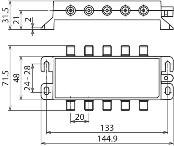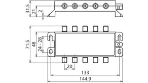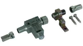 Descargador de sobretensiones quíntuple para los sistemas de antenas de 75 Ohm. Diseño especial para los distribuidores de antenas parabólocas y conmutadores múltiples. El descargador corresponde a las exigencias de apantallamiento de clase A según la EN 50083-2.