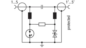 Descargador de sobretensiones con posibilidad de alimentación a distancia con descargador de gas integrado. Diseñado especialmente para las aplicaciones Wireless LAN y Wireless Local Loop, para interfaces de dispositivos y antenas con técnica de conexión coaxial.