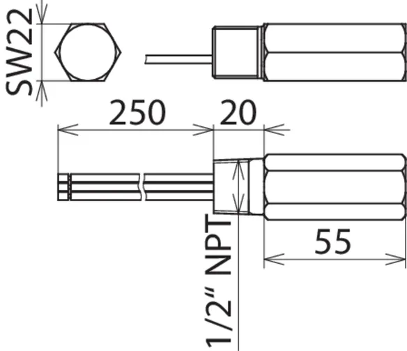 | Para montaje en (campo/lado de equipo) | 1/2-14 NPT rosca interior / 1/2-14 NPT rosca exterior |