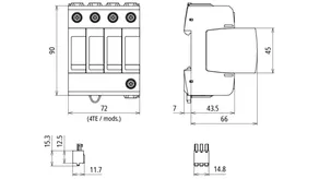 Descargador de sobretensiones modular con gran capacidad de derivación sumada en las líneas N-PE para redes TT y TN-S (circuito 3+1). Cumple los requisitos de seguridad más estrictos según la norma DIN VDE 0100-534 para su uso en el punto de suministro de la instalación eléctrica; con contacto de señalización remota libre de potencial.