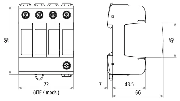 - Fácil sustitución de los módulos de protección gracias al sistema de desbloqueo