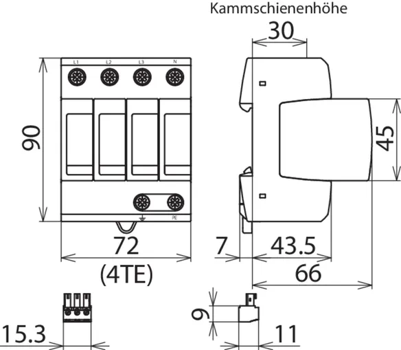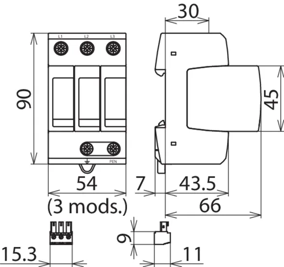| DPS según EN 61643-11 / ... IEC 61643-11 | Tipo 2 + Tipo 3 / Clase II + Clase III |