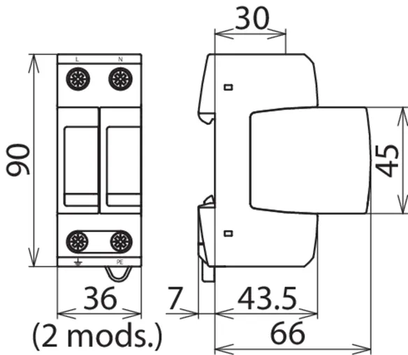| Nivel de protección [L-N]/[N-PE] (UP ) | ≤ 1,5 / ≤ 1,5 kV |