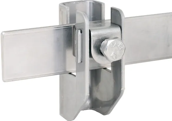 Placa de presión con tornillo M8 para el tendido de pletina hasta 11 mm y de conductores redondos 6-10 mm.