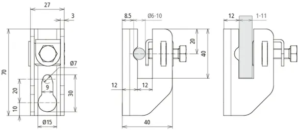 | Fijación | Ø15 / 9 x 20 mm |