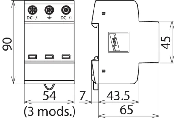 | Corriente nominal de descarga (8/20 µs) [(DC+/DC-) --> PE] (In ) | 12,5 kA |