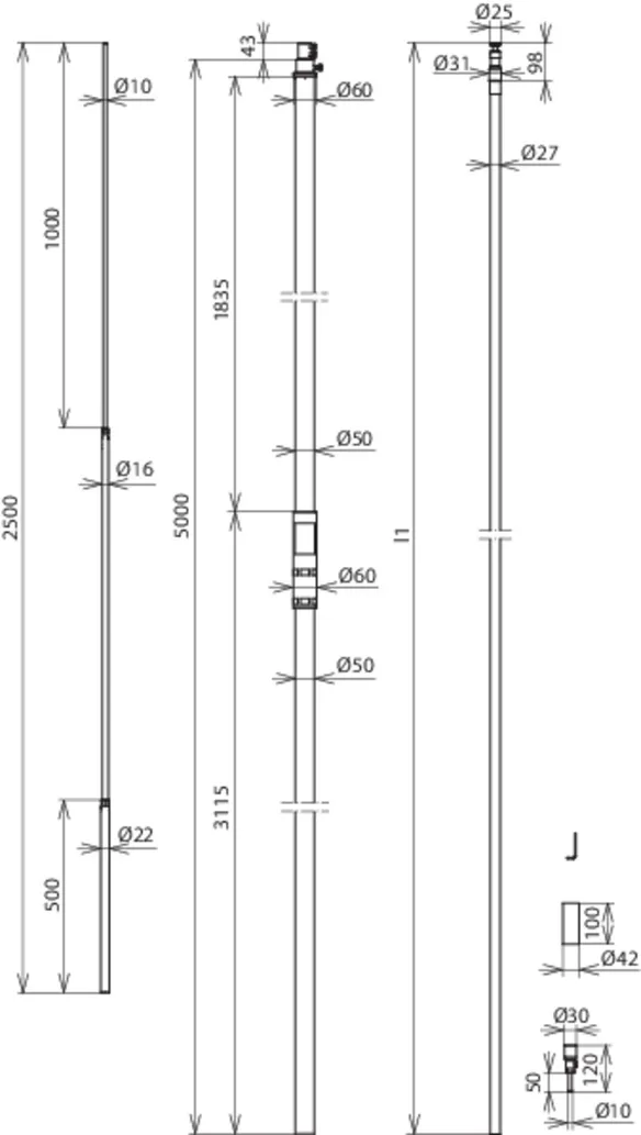 | Máx. longitud libre con punta captadora (montaje en pared) | 5000 mm |