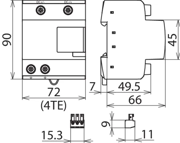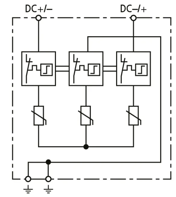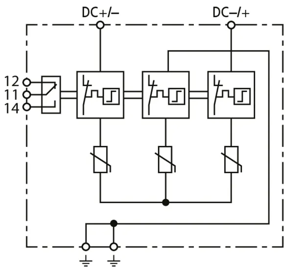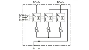 | Corriente total de descarga (10/350 µs) [DC+/DC- -> PE] (Itotal ) | 12,5 kA |