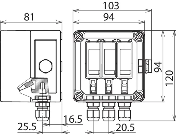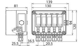| Máxima corriente de descarga (8/20 µs) [(DC+/DC-) --> PE] (Imax ) | 25 kA |