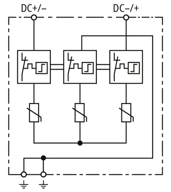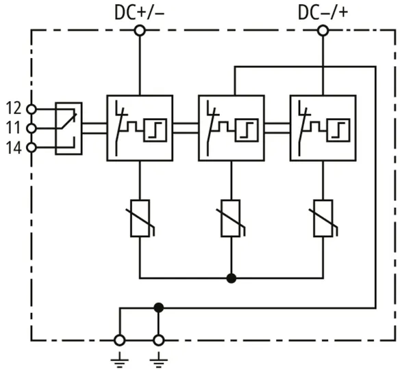 | Máxima corriente de descarga (8/20 µs) [(DC+/DC-) --> PE] (Imax ) | 40 kA |