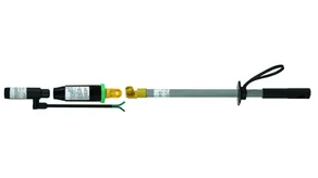 El detector de tensión a distancia ASP con el sensor de campos eléctricos de categoría "L" tiene que contactarse con el anillo verde a la última armadura de protección puesta a tierra de la manera que el sensor de campos eléctricos indique en la dirección del conductor fijado en el otro extremo del aislador