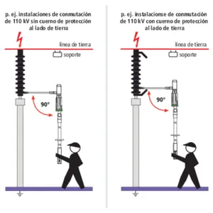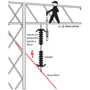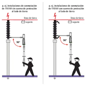 Si hay una armadura protectora al lado de tierra, el brazo saliente tiene que contactarse con la próxima placa protectora posible por encima de la armadura protectora.