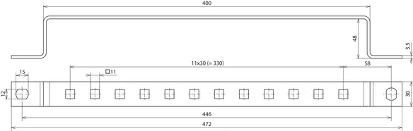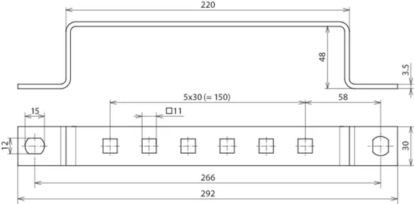 Barras de toma de tierra para atornillar en construcciones de acero, distancia de los taladros 35 mm.