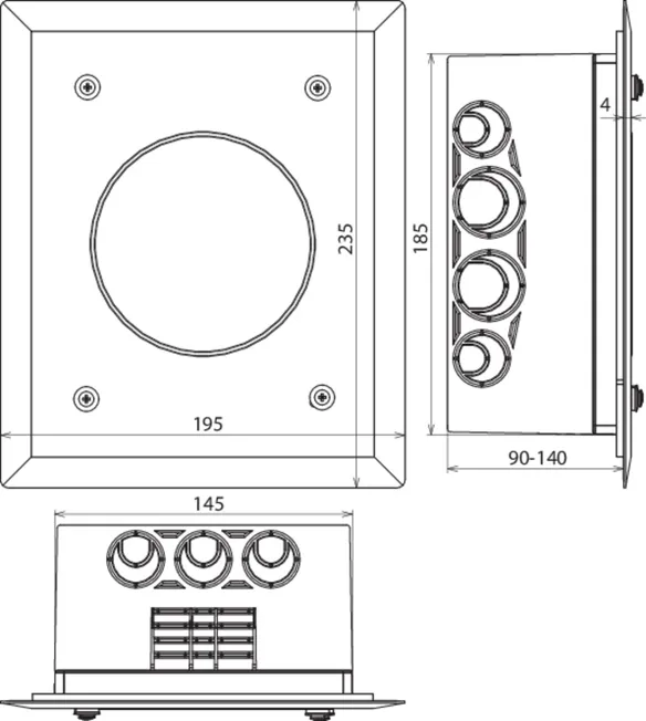 Todos los elementos de fijación necesarios (tornillos y tacos) están incluidos en el suministro así como una tapa en poliestireno (protección de las impuridades durante los trabajos de revoque).