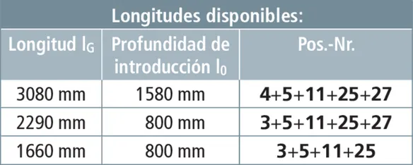 | Longitud total (lG max / IG min ) | 11000 / 2150 mm |