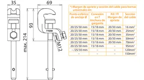 | Para sección de cable Cu | 16 ... 120 mm2 |