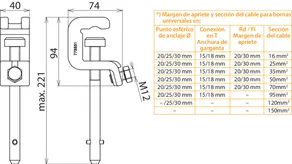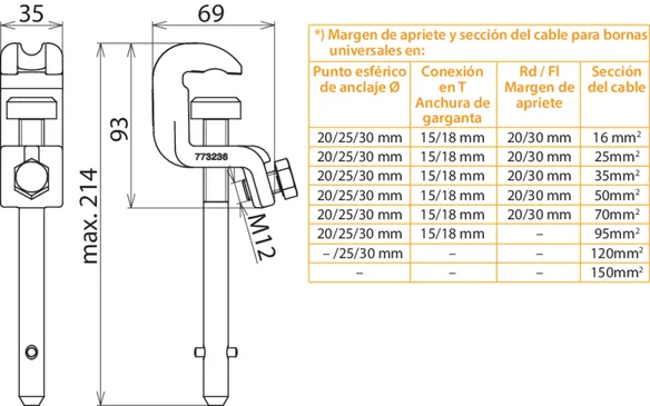 | Para sección de cable Cu | 16 ... 150 mm2 |