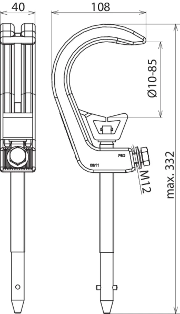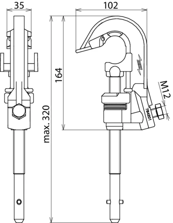 - Con protección antitorsión versión PK1 o PK2 y perno roscado largo con pasador